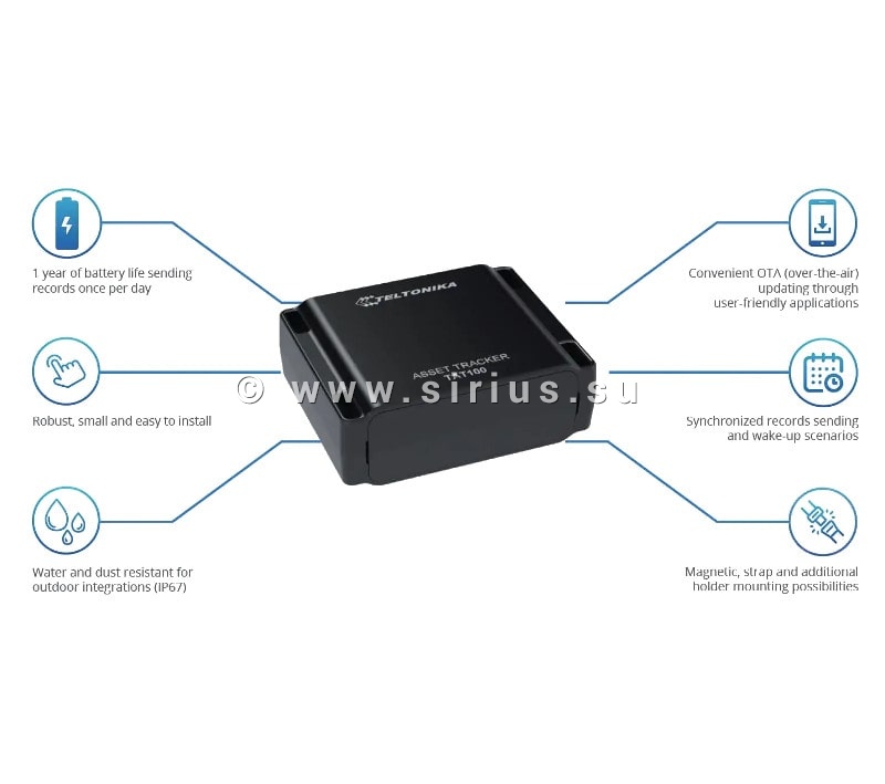 TAT100 (Asset Tracker Easy) - миниатюрный и легкий автономный трекер производства компании Teltonika. Разработан для контроля местонахождения грузов, контейнеров и других перемещающихся объектов. Предусмотрен для применения на объектах, не имеющих источника питания.